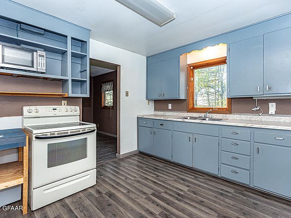 On 4 acres of land just outside of town, this 2 bed/1 bath has everything you need! Inside you'll find new laminate vinyl plank flooring in the kitchen and living room, with original hardwood floors in the bedrooms and a new electric water heater downstairs. The metal roofing material is on the property, just needs installation! Can't forget about the 3-stall garage - Don't miss out on this one! Wood-burning stove in garage, 4 other outbuildings, and 2 grain bins!