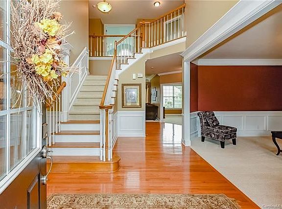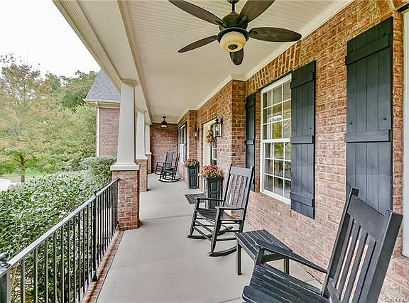 Outstanding cul-de-sac home with a rocking chair front porch! Life is good here! Lovely open floor plan featuring a Great Rm w/a stacked stone fireplace. Kitchen has antiqued cream cabinetry, granite countertops, a center island w/bar seating, back splash & SS appliances including double ovens & 5 burner gas cooktop. Main level office. Spacious Master Suite w/tray ceiling, large His & Hers walk-in closets and adjacent Flex Room. Pretty Master Bath w/tiled garden tub, upgraded granite, dressing vanity. Step up Bonus Rm w/large windows could be 5th BR. Unfinished 3rd floor is already plumbed and wired with electrical! 3-car, side-load garage, irrigation, private back yard. N'hood pool, tennis, basketball & playground. Enjoy!