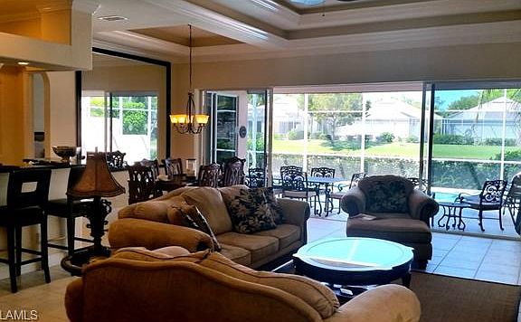 Here it is ... A beautiful, spacious pool home in an upscale gated community west of 41 in North Naples! Modern, open floor plan with 12 foot double volume tray ceilings with a beautiful screened-in pool and spa running the length of the Great Room and Master Bedroom. This is your Naples Paradise! Three bedrooms and a roomy den, two full baths and a half bath ... you will find that this home lives even larger than its 2,346 sq ft. Gorgeous 18-inch tile throughout living area. Spacious bedrooms including a classic master bedroom with pool views and a large master bath featuring tiled shower and separate tub. You will love the contemporary feel throughout the home including an open kitchen with all of the modern amenities and upgrades. The over-sized lanai features an inviting, large heated pool and spa with plenty of deck space remaining for sunbathing and grilling. The two car garage has plenty of storage space, and you will appreciate a convenient utility room in the home. Glen Eden is a meticulously-groomed gated community with pool and clubhouse and low HOA fees. Great area for walking, jogging and biking and just a few short miles to TWO of the top-rated beaches in the U.S.!