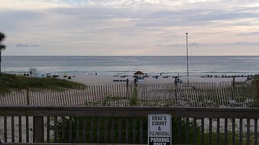 Two bedroom, one bath mobile home. Home includes 12x25 screened in porch with storage building. Washer and Dryer in the unit and included. There is a small fenced in yard and covered golf cart parking. 2014 Yamaha Golf Cart included with accepted offer. Reid's Court is located across the street from the beach with beach front parking and access. This is a great community of full time residents and vacationers. Neighbors for this unit are awesome! Lot includes beach parking and access, large pool with covered seating, water, sewer, basic cable and garbage disposal. Lot for 2018 for this unit is $465.00. Electric was approximately $100/month on average for full time use. Home is offered at $42,000 obo, including golf cart.