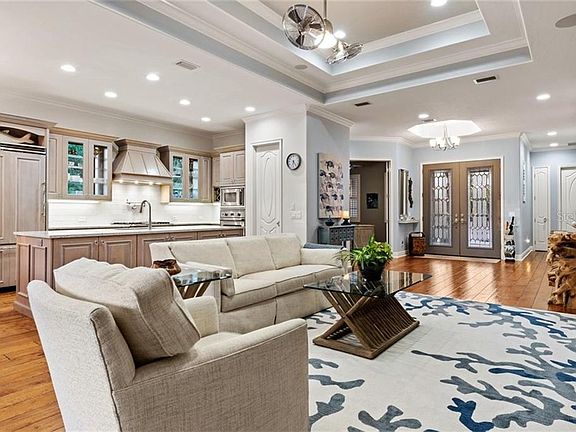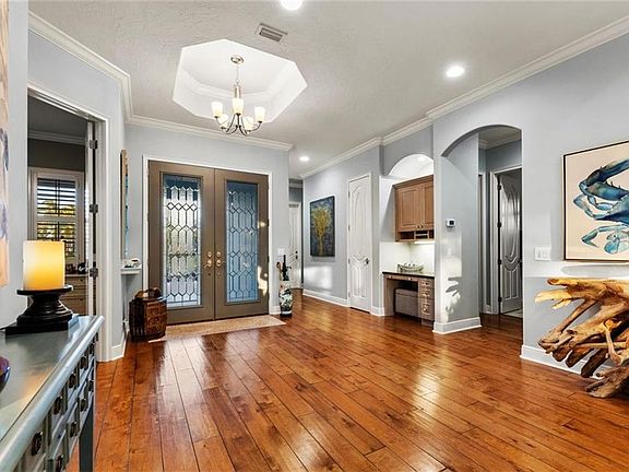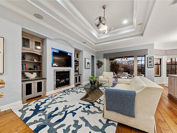 - Interior Features: Ceiling Fans(s), Eating Space In Kitchen, Master Bedroom Downstairs, Open Floorplan, Stone Counters, Crown Molding, Solid Wood Cabinets, Kitchen/Family Room Combo, Built in Features, Tray Ceiling(s)