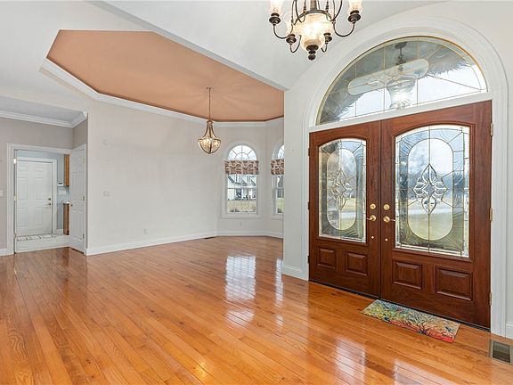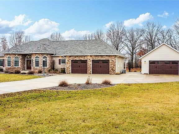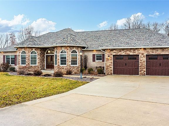f you’re looking for an amazing home with an extraordinarily open concept where thoughtful design & luxurious details come together, then this is the home for you! This 5 bedroom home includes the most requested amenities & décor & offers: an impressive barreled ceiling in the entryway; beautiful hardwood floors & crown molding that elegantly enhance the main floor living areas; a lighted tray ceiling in the front bedroom & the formal dining room; a pass-through Butler’s pantry & a spacious walk-in pantry that connects the formal dining & kitchen; a spectacular kitchen where Gourmet & amateur chefs alike will appreciate all of the work-space -with 59’of custom Oak cabinets, granite counter tops, top-of-the-line appliances & an informal dining area with an atrium door that opens to a covered patio for outdoor entertaining. The spacious living area is warmed by a gas-log fireplace, creating an inviting atmosphere while full-view windows & sliding glass doors open to the patio, bathing the space in natural light & providing sweeping panoramic views of the backyard. The luxurious master suite offers; his & her walk-in closets & an elegantly illuminated bath boasting a Jacuzzi tub, an all-glass shower & a double vanity. Another two spacious bds, a full & half bath, plus a convenient laundry area complete the mail floor living area. The lower level adds another dimension to this already impressive home with; a sizable family gathering area, providing the space perfect for relaxing or entertaining with a wet bar & 21’ of cabinets, a refrigerator, a lighted curio & wine cabinet; two additional bds, a full bath & a large storage area that has built-in shelves for organization & storage. The exterior of this home has been beautifully landscaped & enhances the overall appeal of this exceptional property. The attached 28 x 32' garage is heated & the unattached garage offers additional space for projects, workspace or storage. To experience the luxury, comfort & style that define this exceptional property, please call your realtor today!