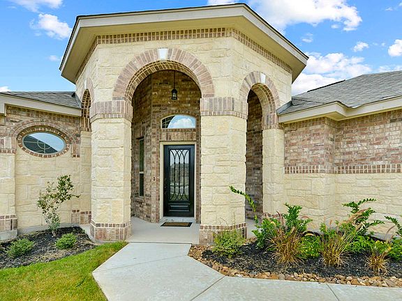 This home makes a strong first impression with a large porch that welcomes you into a beautiful entry foyer with a domed ceiling. A huge open kitchen/living/dining area that is perfect for entertaining and large get-togethers leads to a large outdoor covered patio. A spacious master suite features a stunning walk-in shower (with an option for shower and garden tub combo), a large master closet, a large corner vanity with his and her sinks and cabinets. A flex room with lovely architectural details is located just off the grand foyer and can serve as a formal living room, formal dining room or office/den. The additional bedrooms both feature walk-in closets.