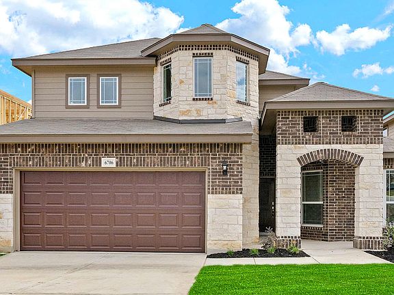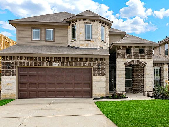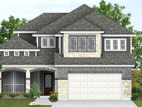 A stunning home design that offers numerous elegant features including a majestic spiral staircase, a grand foyer, a bay window in the master suite, a turrent-style sitting area in the game room and more! The home opens with an awesome view of a two story grand foyer with spiral staircase leading into a huge open area that includes a large family room, dining area and kitchen with walk-in pantry, large island, bar and utility closet. Past the family room is the entry to the master suite with massive bay window, a large master bath with separate sinks, a garden tub and oversized shower as well as a very large walk-in closet with lots of shelf space! At the front of the first floor is a guest suite with a full bath. At the back is a huge covered patio! Up the spiral staircase is a large landing area that is open to the family room and foyer below and leads to two bedrooms, a third full bath and a large game room with turrent-style sitting area.