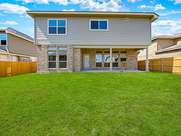 A great design for large families, big entertainers and those that love outdoor living. A 2-storey grand foyer with ceiling treatment opens to a huge family room with a beautiful ceiling detail and an open kitchen and dining area. The kitchen features a walk-in pantry and plenty of counter space. A large covered patio provides plenty of space for outdoor living. A guest suite with full bath and walk-in closet at the front of the home is ideal for guests or can make a great home office. Upstairs is a large game room, two bedrooms that share a Jack 'n Jill bathroom and have large walk-in closets. The master suite features a large bedroom, a bathroom with separate vanities and sink and large shower with a built-in seat and huge walk-in closet.