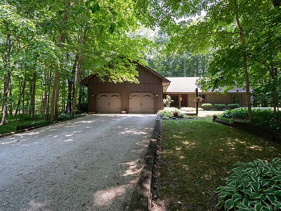 Rare opportunity to own this home on a .9 acre fully wooded lot with a 4 Bed 1.5 story custom built home with trails around the yard leading to your very own secluded private oasis. Mature trees abound everywhere and with no close neighbors you can get back to nature and relax in the 18X14 one of a kind screened porch or just sit on the extensive rear deck that also ties to the master suite area. The large open space main living area with multiple windows opening to the rear yard make this the perfect place to watch nature or just relax. The kitchen was completely updated with custom cabinetry and is now well appointed with cabinets designed to meet all your needs along with solid surface counters. There is a separate office/prep area to help hide all those things of daily life. Main floor laundry, finished family room in the basement along with a fully functioning shop/storage space, oversized garage, and 4th bed upstairs are only a few of the great additional features offered in the home. The second floor has a large space that is designed/ready to be finished off as a master suite or loft area as you desire. Septic just rebuilt in '22 and has been inspected twice annually. Roof newer and only 11 years old. A second wooded adjacent lot is also available if desired. Unit 5 schools and only 5 minutes to Rivian.