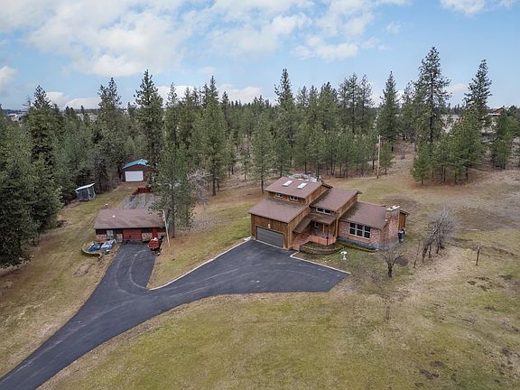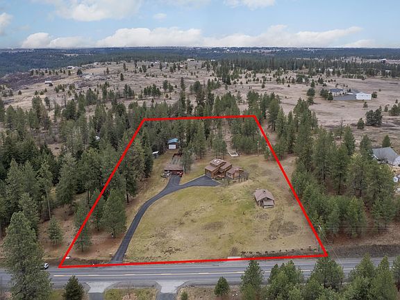 Paved all the way to your garage! You will love the elbow room this nearly 5-acre piece gives you. Want horses? You could have a couple, there is a two-stall barn with tack room out in front of the house. Plus, there are two shops. One 30x34 shop has a concrete floor and power. This shop has 6 dog runs attached to the rear of the shop. The other is 30x30 and is newer. Home has been lovingly cared for and updated over the years. Cathedral ceilings in the living room, a sitting room in the primary suite, and a lovely huge family room upstairs. Great location close to Airway Heights, and easy access to Spokane’s Northside as well.