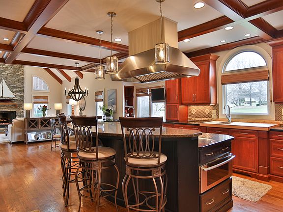 Welcome to this beautiful home with an abundance of amenities located in Lake Forest Estates. With an open floor plan and plenty of space, this home is perfect for entertaining. The spacious, marble floor foyer welcomes you in, then flows into the dining area and living room with a gas fireplace. The living room leads to a generously-sized sunroom with wood-burning fireplace, the ideal retreat for reading a book or catching up with friends. The spacious gourmet kitchen has everything you need: a granite island and eat-in area, an eight-gas burner Wolf range with exhaust hood, warming drawer, Viking refrigerator, built-in deep fryer, large walk-in pantry, wine cooler, built-in wet bar and ample cabinet space. The kitchen flows into a large vaulted family room with a grand fireplace built into a floor-to-ceiling stone wall. The first floor master bedroom suite is an expansive sanctuary with a sitting area with fireplace and built-in bookshelves, a large bathroom with double vanities, heated floors, soaking tub, walk-in shower (with heated floors here, too!) and two custom-built closets. Four large bedrooms and three full baths greet you on the second floor, along with a sizeable rec room. In the lower level you will find more entertaining and living space with a media room, complete with movie screen, projector and theater seats; a recreation area; an exercise area; and an updated full bathroom. An unfinished storage area rounds out the lower level. This home has a three-car garage, professionally landscaped yard, and a new roof as of October 2019. This lovely home is steps from the Lake Forest Country Club and is ready for you!
