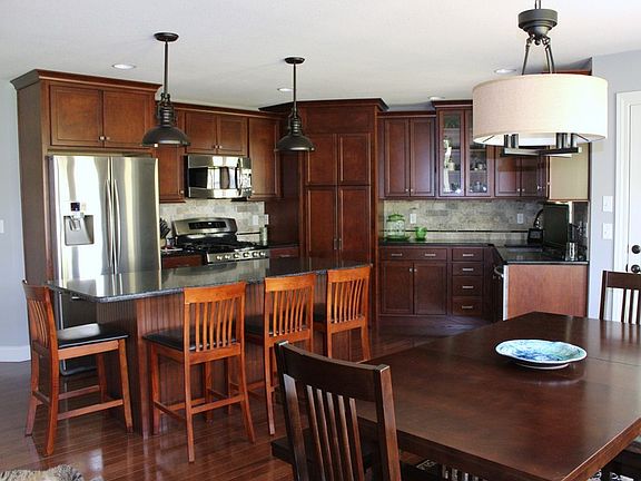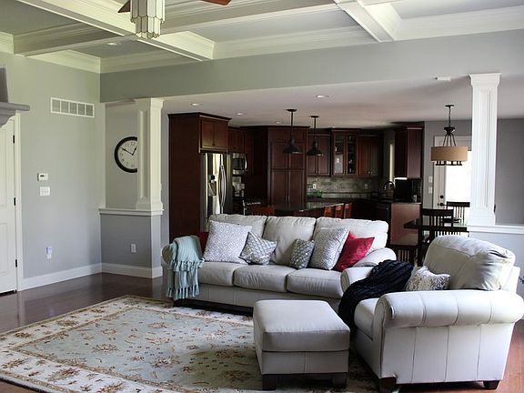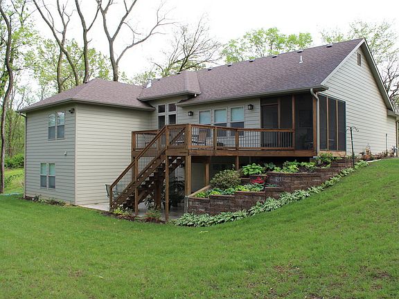 Beautiful 5Br/3Ba Craftsman style walkout with 3,621 sq.ft of finished space, has a partially wooded, private lot in the Sunset Trails Subdivision.  The main level has 1,768 sq.ft. of finished open concept living.  The living room has a ten foot, coffered ceiling with crown molding, a gas fireplace and built ins.  Hardwood on the main level in the foyer, living room and kitchen.  Large, eat-in kitchen with a walk in pantry, quartz countertops, 7 ft. island and SS appliances.  The laundry/mud room off the garage is tiled with a built in bench for more storage.  The master has a walk in closet with built ins, and the master bath with heated floors, has a custom tiled walk in shower.  Two additional bedrooms and full bath complete the main level.  The lower level walkout has 1,835 sq.ft. of finished space with a huge family room, kitchen, full bath and two additional bedrooms, with one nonconforming.  An all concrete storm shelter is equipped with emergency lighting.  Plus, an additional 1,247 sq.ft. (unfinished) space for additional storage.  Outside the family room is easy access to the tiled patio under the deck with a wooded view.  Enjoy your morning coffee on the screened porch to watch turkey and deer.  Added features include a wireless security system, irrigation system and custom details throughout this almost new home.  Schedule a private showing today!