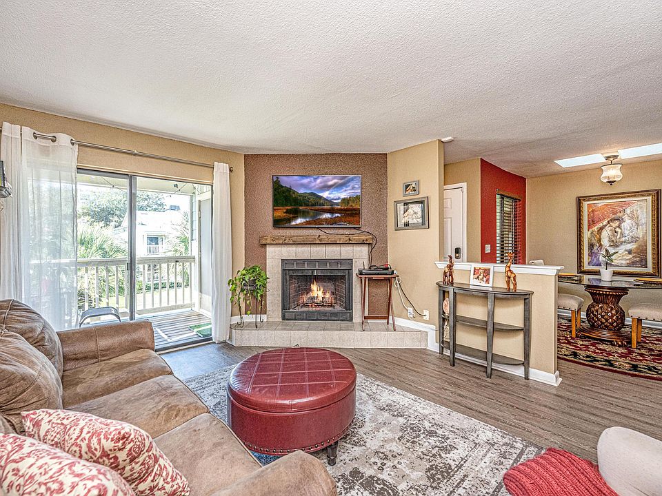 Excellent Location! Minutes to Sullivan's Island, Shem Creek and Downtown Charleston. This upstairs unit faces the tennis/pickle ball court and is only a short walk to the clubhouse and pool. With a beautiful skylight in the dining area and spacious floor plan with wood burning fireplace, this unit is perfect for entertaining. New LVP floors throughout with carpet in bedroom. HVAC and Water Heater only 5 years old. Covered balcony that overlooks the tennis/pickle ball courts is perfect for afternoon relaxation or dinner outside. The highly desired Bay Club Sea Lofts offer boat storage, bike storage, a fitness room, a dog park, a pool, tennis/pickle ball courts, and more! You will not want to miss this incredible opportunity to live in the heart of Mount Pleasant!