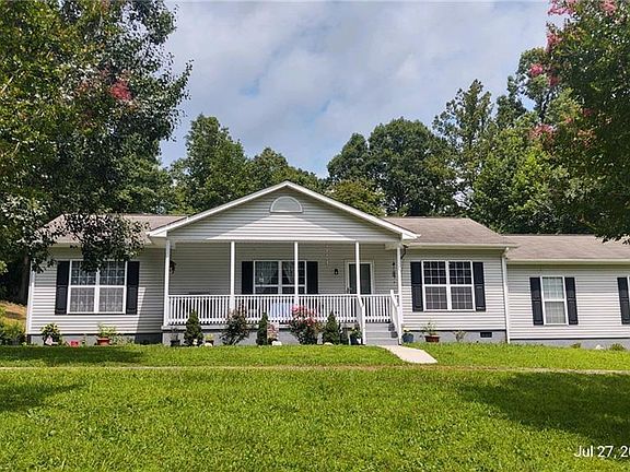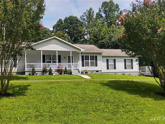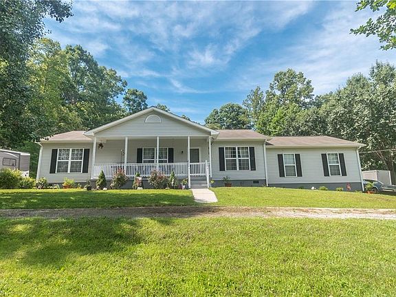 This lovely, well-maintained home situated on a 1-acre lot sits in the country just a short walk to the Dan River and Jessup Mill where you can kayak, tube, fish or canoe! This home has 3 bedrooms, 2 full baths and an open concept living and dining area. It features new flooring, fresh paint, cozy sitting area with a nicely done wood stove to snuggle up to in the winter. Great natural lighting enters into the home through tall windows in all main rooms. Galley kitchen comes with appliances, lots of cabinets and pantry. Laundry room off the kitchen with back door leading into a spacious 24 x 24 insulated double garage. Enjoy nature while sitting by a firepit in the back yard or rest on the rocking chair front porch and watch the occasional car go by. This home is conveniently located in Westfield in the Collinstown Community, approximately 25 to 30 minutes to shopping in Pilot Mountain, Mount Airy or Stuart Va. Escape the rat race and come to the Country!
