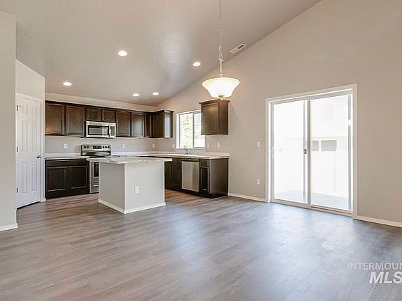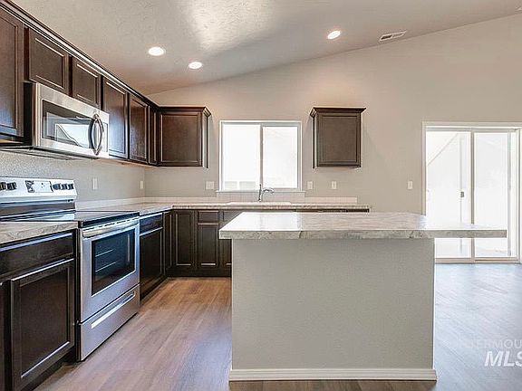 Beautiful single level home located in South Meridian community built in 2019, one block from park in highly desirable location. Split bedroom floor plan with 4 bedrooms, 2 full bathrooms, 2028 Sq. Ft, 2-car attached garage, fully fenced yard, and no rear neighbors. Open concept with the great room featuring vaulted ceilings, large windows bringing tons of natural light, ceiling fan that opens to dining area and large kitchen with island, pantry, and stainless steel appliances. The spacious master suite features vaulted ceiling, large walk-in closet and dual sinks in the master bathroom. Also has a spacious laundry room. Close to schools, shopping, freeway access. Tenant pays all utilities and lawn care. HOA fee and irrigation is included in rent. Dogs accepted upon approval. $2595 per month/1-Year Lease with $2500 Security Deposit, shorter lease considered upon approval. Dog ok with additional $300 deposit (no cats)