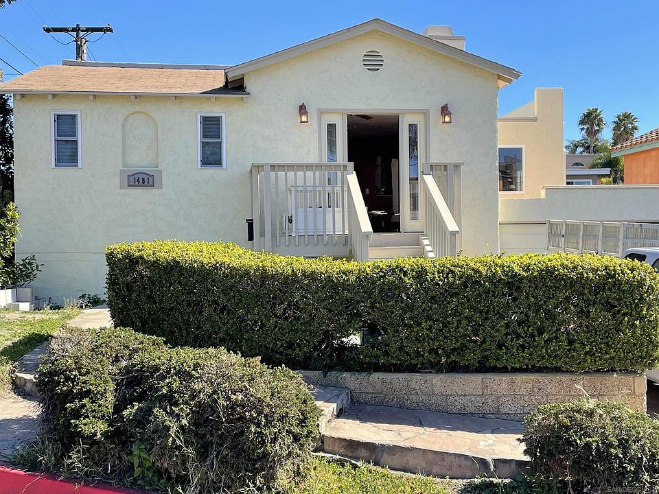 Built in 1938 this cosmetic fixer offers spectacular views of the Bay, Ocean and Sea World. The property currently has 2 bedrooms with a potential bedroom downstairs and 3 full bathrooms. The interior offers cove ceilings, arch openings dividing the kitchen and the living room. A separate dining room with deck and adjoining view deck above the garage. The two bedrooms have their own baths and the kitchen is large with lots of counters and cabinets. The house sits on the front of the lot with backyard space to add on or develop it into a resort style living. The potential is endless. No furnace.