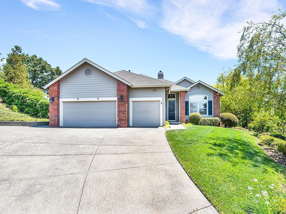 Set for living! Wonderful Skyhawk home, very private, end of cul-de-sac. Exquisite views & captivating sunrises. Single level 4bd 2ba home on over 1/2 acre. Open kitchen features; Corian counter tops, built-in desk, adjoining spacious breakfast area w/bay window & seat. Charming deck off dining area. Ldry/Rm with sink. Master Bedroom w/slider to patio & large Master bath w/double sinks. 3 car garage. Beautiful landscape w/great irrigation system.