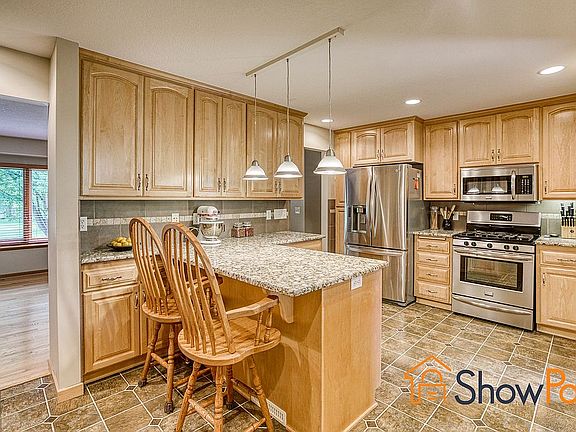 This Shoreview home is located in the desirable Mounds View School District with a backyard bordering the Rice Creek Trail North park preserve. The kitchen, dining and great room areas overlook the serene park preserve as does the garden view bonus/game room. The home features quality inside and out and includes: built-in hardwood bookcases and entertainment center, granite kitchen and bath counters, hardwood living room floor, stainless kitchen appliances and custom cabinetry, vaulted wood ceiling, upper and garden view level built-in gas fireplaces, 6-panel solid hardwood interior doors, and lower-level heated bathroom floor. Outside amenities include: backyard deck and stamped/colored concrete patio, garden view level walkout, large storage shed in the backyard, professionally installed epoxy garage floor with workbench and storage cabinetry, and colored and stamped concrete in front. Landscaping includes professionally installed irrigation/soaker system, mature trees, and perennial plantings. Showings for this property will begin June 20, 2020 and a mask is required to tour this property in person. Buyers agent's welcome. Contact (651) 334-8054 with questions. All showings must be scheduled on www.showpal.com.