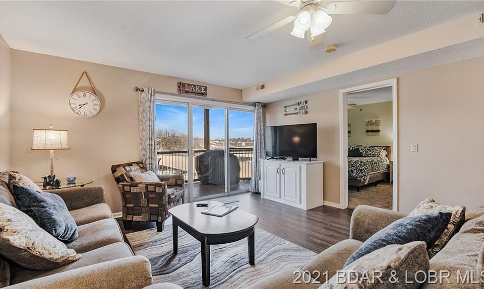 Hard to find 2 bed 2 bath condo located in Osage Beach at the 21mm! This 2 bedroom, 2 full bath condo offers 980 square feet of living space, updated flooring throughout, a 10x30 ft. boat slip, and comes Turn-key! Whether you are looking for the perfect investment or a place to come and relax, then this is it. From the time you walk in you will notice the open concept kitchen, dining, and living room. The master bedroom offers it's own private on-suite, walk in closet, and great views of the lake. One additional bedroom and 1 full guest bath allows room for all your guests. The Ledges complex is very family oriented offering a sand beach and 2 pools. Be sure to Schedule your showing today!!