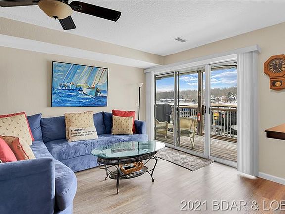 Come see this beautifully updated 3 bedroom, 2 bath condo at the 21mm in Osage Beach. This unit comes Turn-Key and includes a GARAGE, 10x34 ft. boat slip, and a 10x30 ft. boat slip. From the moment you walk in you will notice the updated kitchen with granite counters, stainless steel appliances, and pantry. The open concept kitchen, dining, and living area allows for plenty of space for entertaining guests. The spacious master bedroom has peaceful views of the lake, access to the deck, a walk in closet, and spacious master on suite w/ a tiled shower. The two additional bedrooms and bathroom are perfect for kids or guests! Outside you will find a nice covered deck with stairs creating easy access to one of your boat slips located right in front of your condo. The Ledges Complex is very family oriented offering a sand beach and 2 pools. It would make the perfect weekend getaway or investment property. Be sure to schedule your showing today!!
