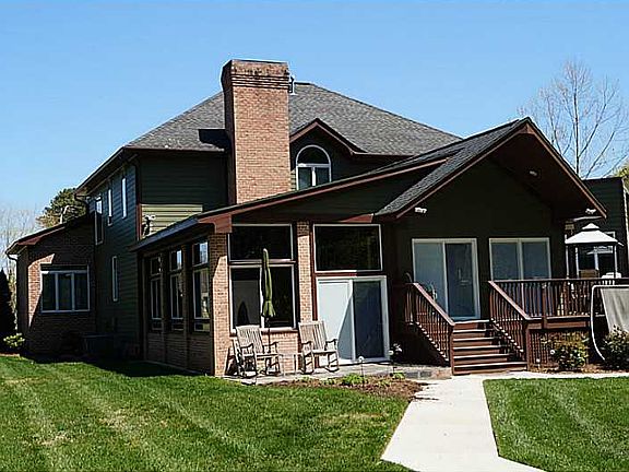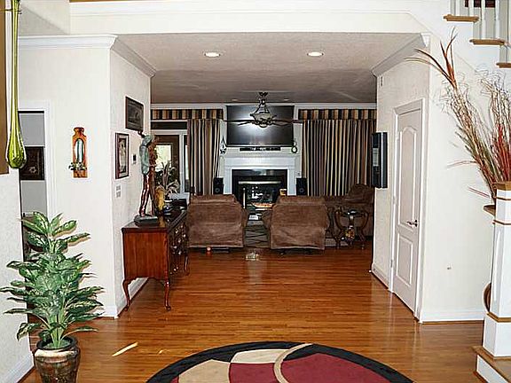 High end home on lake. Upgrades include complete landscape, rip rap on shore to lake, circular driveway, expansion of existing driveway, tree removal, yard complete with sod, two rooms added on one with marble floor, built in stereo and surround components, external out door speaker system, deck and much more. Hard wood floors inside, granite counters, custom kitchen and upgraded air handlers.