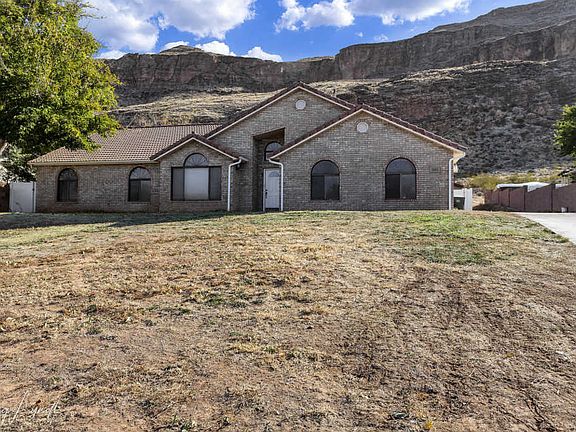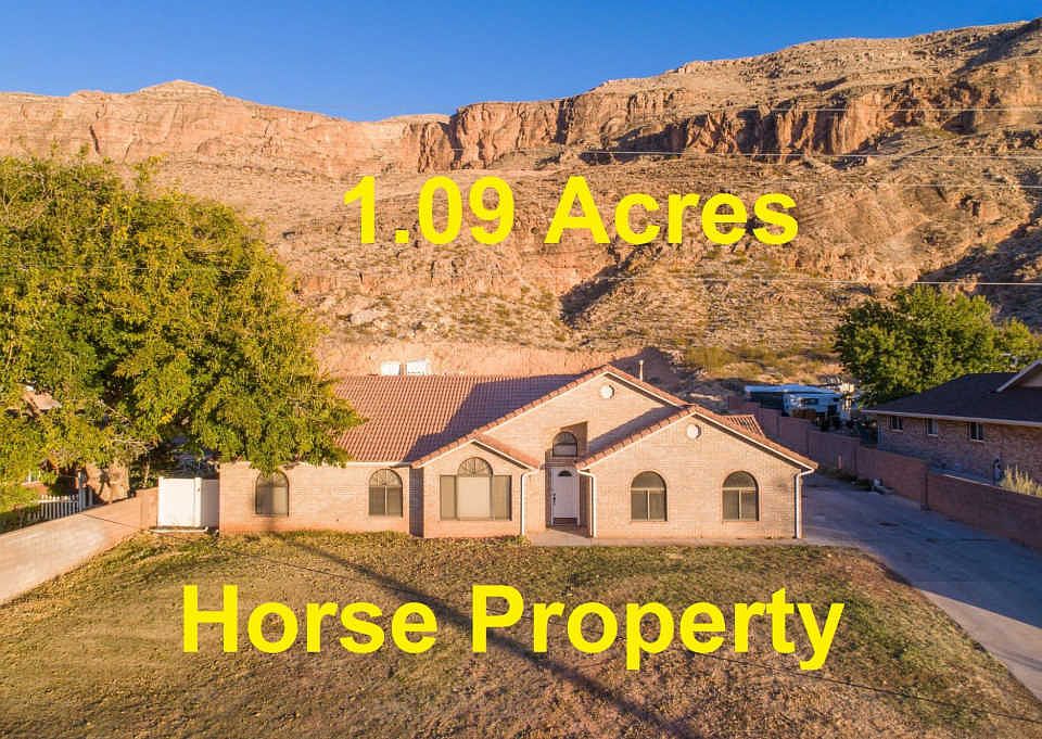 Beautifully remodeled brick home on 1.09 acres of horse property tucked beneath the Hurricane Cliffs with no neighbors behind! Wood-look tile floors, white cabinets, granite countertops, 3-tone paint, LED lights, walk-in tiled shower in master, gas fire pit on back patio, great views, detached 1-car garage plus a 30ft x 36ft concrete pad with power & water stub in the middle upper terrace, setup