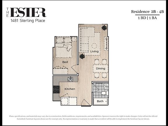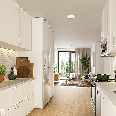 Spacious & Desirable 1 BR Home No Fee! Available for September 15th! Residence 4B is a peaceful 1 bedroom, 1 bath home. Its open concept layout creates the perfect space to both entertain and enjoy tranquil living. Experience carefully crafted, boutique living in the heart of Brooklyn. Comprised of studio to one-bedroom homes the Ester encompasses thoughtful designs and the conveniences of modern-day living. Residents benefit from a common rooftop perfectly suited for entertaining and features sweeping views of Brooklyn. Combining the neighborhood's historic charm and modern details, The Ester seamlessly blends to create a sophisticated ambiance throughout every residence. Meticulously designed with a thoughtful approach to maximize functionality, each residence features spacious layouts and warm flooring to create a vibrant, inviting space. Sleek, open kitchens feature rich finishes throughout including striking white cabinetry, a Corian countertop, and a full suite of stainless steel appliances. Tastefully designed bathrooms are outfitted with sparkling subway tiles, chrome fixtures and a soaking bathtub that enhances the serene atmosphere. In addition, each unit is equipped with a stackable washer and dryer for ultimate convenience. Residents will enjoy a virtual doorman serviced by ButterflyMX - a smart intercom system that allows residents to receive video calls, unlock the door remotely through the smartphone app. Known for its easy access to some of Brooklyn's most popular locales, including the Brooklyn Museum, the Brooklyn Botanic Garden, and Prospect Park, Crown Heights offers residents a mix of culture, history, and delicious cuisine. The Ester is within a short distance of the 2, 3, 4, A, and C subway lines convenient for commuting all over the city. All images are artist's rendering. Images, renderings, representations and interior decorations, finishes, appliances and furnishings are provided for illustrative purposes only and have been compiled from sources deemed reliable. Though information is believed to be correct, it is presented subject to errors, omissions, changes and withdrawal without notice.