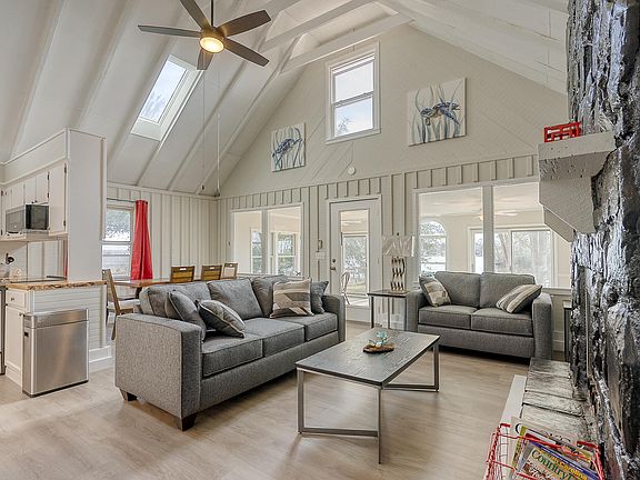 Completely renovated Lake Marion waterfront home on Taw Caw Creek with spectacular Lake Marion views & private dock. The interior of this home has been updated w/ luxury vinyl plank flrs, new appliances, bath rm., butcher block counter tops, light fixtures & HVAC mini split system. Located on a deeded lot in one of the lakes most popular areas, this home has high vaulted ceilings, exposed beams, stone fireplace & freshly painted wood paneling walls. Upstairs has a nice loft(that is being used as a 3rd. bedroom) & a full bath. There is also a large heated & cooled sunroom w/ panoramic lake views & a spacious detached 2 bay garage with plenty of storage. Boat ramp close by. Good rental history & excellent reviews!
