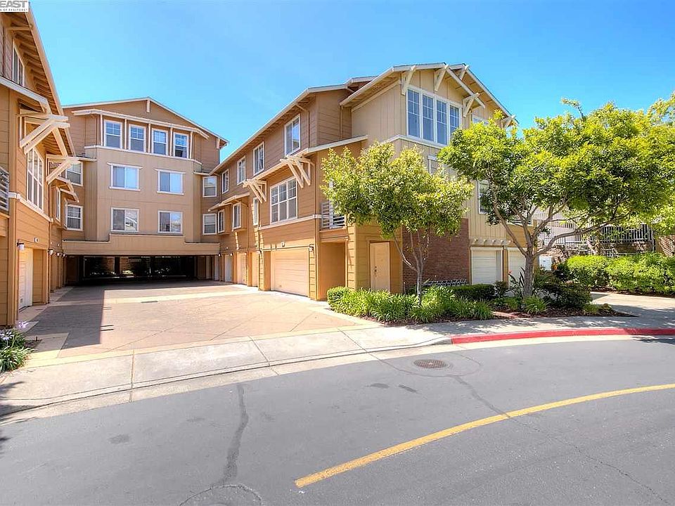 Tastefully updated sunny 2 bedroom, 2 bath turnkey luxurious townhouse-style unit boasts brand new Quartz countertops, Glacial Ice mosaic backsplash, stainless steel appliances, Berber carpet, and stylish Mocha wood floors. It has newly refinished kitchen and bath cabinets. High ceilings, accented by crown molding and relaxing new wall colors, create an inviting living space throughout. This highly sought after end-unit has only one shared wall, a 2 car garage with interior access, and a private patio perfect for BBQ. The complex is immaculately maintained and its HOA is well funded. You and guests can enjoy the private community clubhouse and manicured park/play area. Minutes to 580/880/San Leandro BART and 2 mins to the upcoming light rail-esque BRT elevated station. Shows beautifully! Even the garage is newly painted and finished with high-end epoxy flooring! Must see to believe!