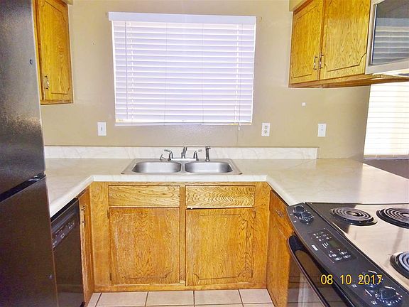 Why pay rent when you can own your own Sunset Mesa twin home for less?! Low maintenance, central location, in ground swimming pool taken care of and paid for by HOA. 3 bedrooms, full hall bathroom and master bedroom on suite with tile shower. This home has a split floor plan for privacy. Living room with wood laminate flooring, ceiling fan and doors to a covered patio and private yard fenced by block wall. Kitchen open to dining room by breakfast bar. Large pantry, utility room. Garage.