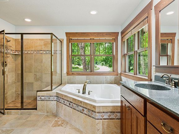 Exquisite former model home by Bruce Lenzen, nestled on nearly 7 private wooded acres in the heart of Afton. Recently refreshed interior and exterior paint elevate the timeless craftsmanship throughout.