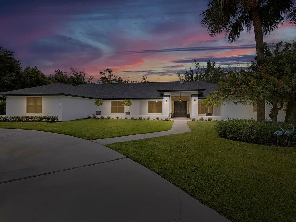 This Fully renovated home is a must see. NO HOA. Located in the highly desired paddock park 1. NEW roof, New Hurricane impact windows and doors*, NEW AC, NEW tankless water heater, NEW appliances, NEW cabinets, NEW paint inside and out, NEW! NEW! NEW! The lush landscape surrounds the expansive private and fenced lot. The brand-new exquisite kitchen includes an over-sized island including mini drink fridge, tons of storage, and drawer style microwave. Escape to the owners' suites bathroom for a spa like experience including a steam shower, luxury soaking tub, and a private water closet equipped with a Toto smart toilet. The cabana bath will lead you outside to a private heated pool and hot tub. Large circular driveway, Gate with trailer parking, Shed is included for extra storage