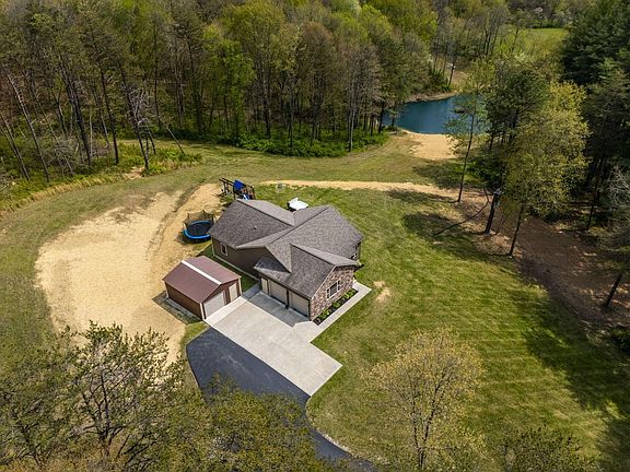 This GORGEOUS Custom Built home is located in the WOODS overlooking a fully stocked pond with 2 docks, and sits on over 14 impressive acres. This home is located in the Heart of Hocking Hills and within 5 minutes of the Rock House. Nature abounds in this rural paradise. Enjoy the hot tub while watching wild life stroll over the acreage. This home has been impeccably maintained and built with quality materials. The property features the 2 car attached garage and a detached 1 and a half car garage. Much, too much to list. Come see all this property has to offer! You won't be disappointed.