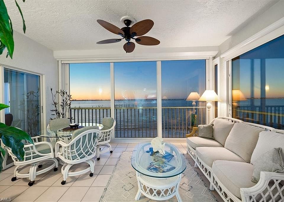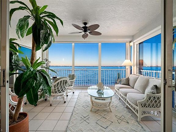 Welcome to a meticulously newly remodeled and beautifully appointed direct waterfront residence with a private beach and most panoramic views over the sparkling blue river! You will be stunned by absolutely breathtaking unobstructed views. This spacious 3 bedroom, 2 baths condo lets you wake up to the sounds of the waves, catch the sunrise from your front balcony and later enjoy your sundowner with the most amazing multi-million dollar sunset views from the spacious lanai! A fresh design combined with luxurious modern furniture awaits – it comes turnkey furnished, ready for you to move in! Further highlights include a private elevator, an extra storage, a screened lanai that can be used as a separate air-conditioned room with its enclosing glass panels with glass doors. Harbor Place offers gated and exclusive privacy, beachfront access, a large private pool, exercise room, barbecues, a butterfly garden, access to 2 further pools, tennis and pickle ball courts and a private marina. This neighborhood is one of Fort Myers’ finest communities. Outstanding location. Close to shopping, restaurants, entertainment and beaches. Life cannot get any better!