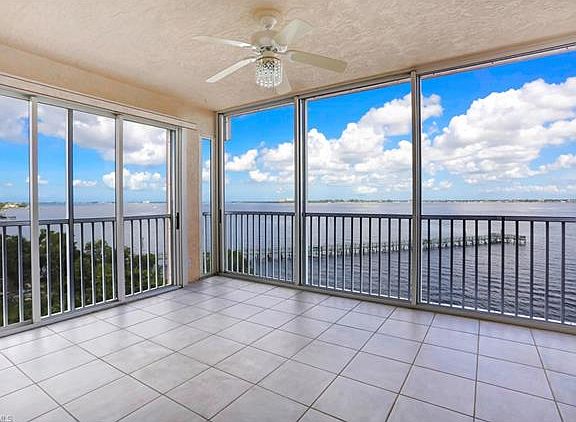 MAJESTIC and RARE VIEW.... LOCATION!!! This one will sell fast at this price! Riverfront living is at its finest in this beautiful residence in the private and small, gated community of Harbor Place. Spacious and naturally lit, this condominium is PRIME waterfront and offers breathtaking 360* views of the sunset, boats, and dolphin on the Caloosahatchee River. The elevator opens to your private foyer and entrance. Open floor plan with THREE huge bedrooms, walk in closets and separate dining, WET BAR and kitchen ISLAND. This model is THE LARGEST and MOST OPEN floor plan available. No matter which room you're standing in, you have an amazing view inviting natural light. The large kitchen is perfect for cooking and entertaining with all new stainless steel appliances. Enjoy cocktails on the screened lanai balcony before, during and after dinner while the cool breeze gently blows. The community offers a private beach, large, heated pool, clubhouse, exercise room, fishing pier, PRIVATE MARINA and even a butterfly garden. Covered parking and additional storage. Minutes from downtown Fort Myers Sanibel Island and the beaches! This is YOUR riverfront DREAM home!