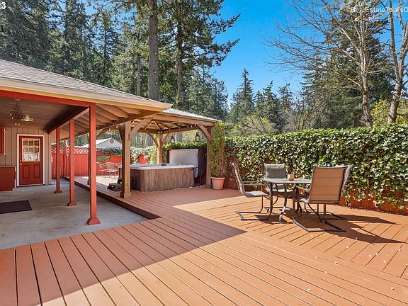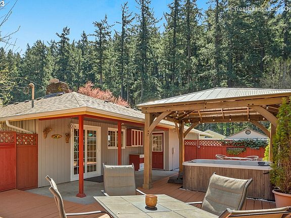 Location, location, location! This private sanctuary offers a large yard and hot tub deck, complemented by the stunning tree-lined backdrop of Powell Butte Nature Park. You can access the base of Elderberry Trail just outside your front door, which connects to over 600 acres of walking and biking trails, featuring Mt. Hood views, meadowland, and forest. This 3-bedroom home with a complete garage conversion also features original mural artwork that mirrors the forest setting. The crackle of the wood burning stove warms the hardwood floor lined interior, and the year-round covered and open decks offer complete privacy for hot tubbing, sunning, and other relaxation activities, creating an unmatched tranquil retreat. Despite its serene location, this property is just 18 minutes from Clackamas Town Center, 22 minutes to Portland International Airport, and near abundant shopping options. You'll have ample space to park your RV or boat, or open the gates and move the shed for even deeper parking. The kitchen appliances are included. Garage has been converted into laundry center, closet and 15 x 18 finished living space in 2019. The sale includes the additional 1695 sqft vacant lot to the west. All kitchen appliances included! Roof, gutters and fascia boards new in 2018, furnace replaced in 2012, hot tub 2 years old.