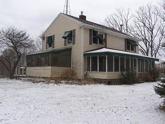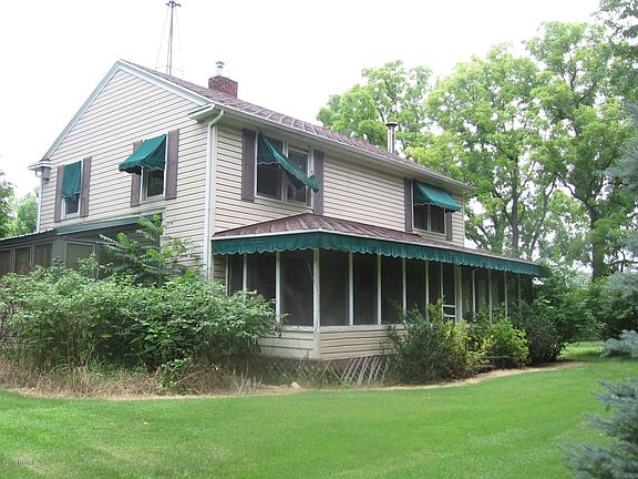 Welcome to the Homestead. Stately 2 story, 10+ acres, some old growth trees, windmill tower, silo, corn crib, 2 small outbuildings, 2 car garage with loft for storage. A 31 x 8 screened front porch, with deck off rear of home. The home features 2 bathrooms, one with a claw-foot bathtub, living room with wood stove, nice sized dining area, a solarium / sun room, & main floor laundry. There are 4 bedrooms and a bath upstairs. A full basement and the exterior is vinyl sided. Taxes are non-homesteaded. Millage rate will fall if you occupy as your principal residence.Obviously by the price, you can tell the home needs TLC. It is being sold ''as is'' with the seller not paying for any inspections and / or repairs. No FHA/VA. Cash or 20% down conventional only.