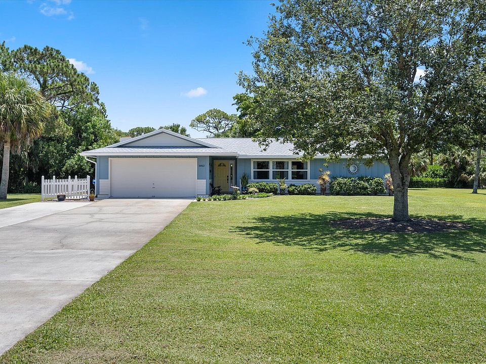 Escape to your own slice of paradise in the highly coveted Palm Beach Country Estates! This charming home is nestled in one of the most sought-after locations, offering a pristine 1.15-acre refuge that is sure to captivate your heart. This meticulously maintained ranch-style home has new impact storm windows, as well as, a new roof and gutter system. The freshly painted exterior hints at the care lavished upon this residence, setting the stage for the welcoming home interior. With 3 bedrooms and 2 bathrooms, this home's split floor plan promotes privacy for the entire family. The formal and informal living rooms and dining room provide ample space for gatherings with family and friends. The stone fireplace adds a cozy touch for those special moments.