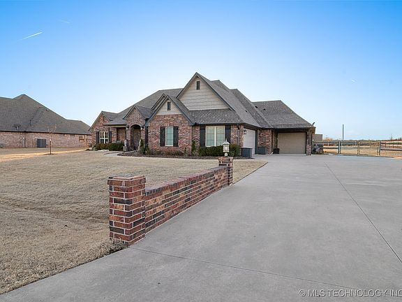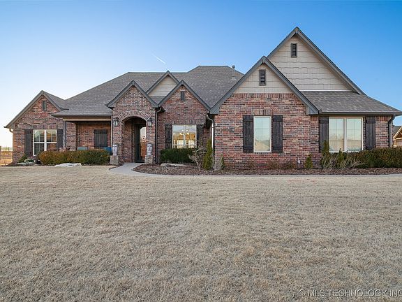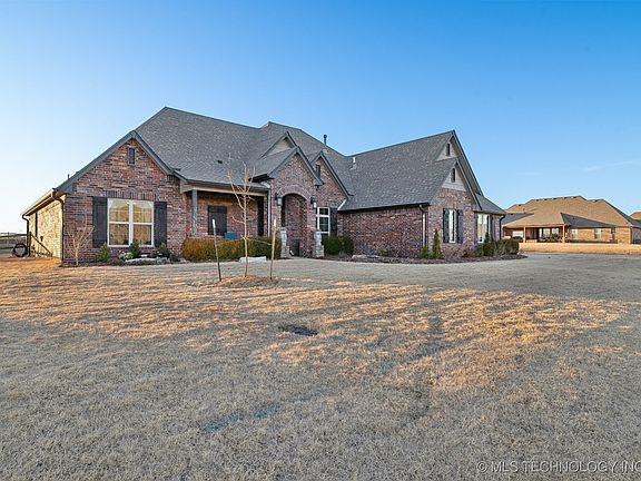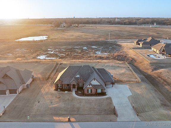 Come see this beautiful, spacious home that sits on just over half an acre. From the moment you arrive, you'll love the generous amount of green space and the thoughtful design with stylish touches that make this home perfect. Stepping inside, you instantly feel the large, open, welcoming space. You'll see the living room that instantly creates an inviting atmosphere, a fireplace, and expansive windows that span across to include the dining area. The windows bathe the space in natural light and offer an unobstructed beautiful view of the backyard and adjoining field, plus the gorgeous Oklahoma Sunsets you'll be mesmerized with each evening, making you feel like you're in your own section of the world but knowing you're still close to everything. From the dining room, step outside to the covered patio where a built-in gas grill awaits, complete with a ceiling fan and roll down shades to keep you cool in the summer. It's the perfect spot for hosting upscale al fresco dinners or casual weekend cookouts. The kitchen is a masterpiece with gleaming granite countertops, walk in pantry, gas stove, and custom wine or coffee bar crafted from raw edge maplewood, a true conversation piece. Take a minute to appreciate the beauty in that. In addition to the split floor plan of 3 bedrooms and 3 full bathrooms, there's a large game room that combines entertainment and comfort with a wet bar and built in Murphy beds, perfect for hosting overnight guests. The spacious garage is located off the large utility room and is complete with a separate tandem garage. Take a peek inside to see the tankless water heater and roomy storm shelter that's easy to access if you ever need it. Every detail of this home has been carefully curated to offer exactly what you're looking for. Contact me to come see it!
