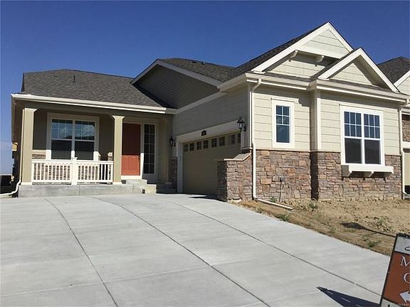 Welcome home to your immaculate home w/ impressive upgrades! Engineered hardwood flooring & 9 ft ceilings lead you inside the bright floorplan. The open great room is an entertainers dream! The gourmet kitchen is fit for a chef w/ upgrades like granite countertops, full backsplash, stainless appliances & 42" cabinets w/ crown molding. The tranquil master suite boasts a coffered ceiling & decked out master bath complete w/ granite countertops & ceramic tiling. Green energy efficiencies built in throughout will save you money! Golf course community living couldn't be easier in lavish new home community. Heritage Todd Creek is an active adult community w/ resort style living! Enjoy the numerous activities offered including golf, swimming pools, fitness center, library & vast array of programs & classes! This home is complete and ready to be purchased! Photos of actual home.