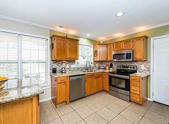 Immaculate, well-maintained home in Steele Creek close to Rivergate Shopping Center, Carowinds and the Outlets. This stunning home boasts tile and wood laminate throughout, stainless appliances, granite counter tops (kitchen and baths), scraped main floor ceilings with high-hat lighting, wired home theater speakers, and upgrades galore. The exterior enjoys a massive & electric retractable awning, custom stone outdoor fireplace, storage shed, and the property backs up to the recreational area-- no backyard neighbors here! This Southbridge Forest house has been meticulously maintained, inside and out, with beautiful landscaping surrounding the home. Roof, HVAC and water heater were all installed less than 3 years ago (HVAC & Roof - 2016). Home is move-in ready. You will not be disappointed!
