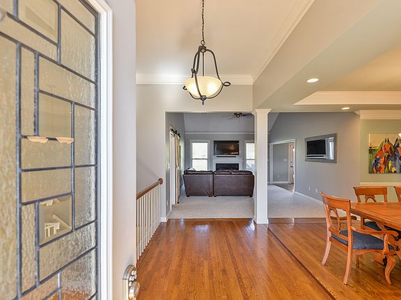 Welcome to this beautiful 3 bedroom, 3 bath home in the Fox Bend neighborhood. With other homes selling for $400K+ in Fox Bend, this lovely home presents a fantastic opportunity for you to move into this highly desired subdivision at an affordable price point. This charmer sits perfectly on the end of the cul-de-sac and truly has it all. You enter an open floor plan with beautifully maintained hardwoods, featuring a border inlay that brings the extra attention to detail and character you are looking for. Now transition into the large, open living room with vaulted ceilings and a cozy, gas fireplace. The main floor also features a large primary bedroom. French Doors open to access of your very own deck that overlooks a view of the amazing pond at the edge of the property. Talk about a Master Suite Oasis!! It does not end there; the Master has a marvelous en-suite with a newly remodeled shower, seamless glass doors and tile surround. This five-piece bath has a Jacuzzi tub, double sinks with one side that has an upgraded 3-way mirror, separate toilet room, and a huge master walk-in closet conveniently located off the bath. Included on the main level is a large, eat-in kitchen with beautifully maintained cherry cabinets and stainless appliances. Off the kitchen is your laundry room that offers plenty of storage with both cabinets and a closet. This room can also be used as a mudroom as it serves direct access to the large 2 car garage. Double doors off the eat in kitchen lead you out to the home's second deck. This deck ends at a paved aggregate slab that provides even more outdoor living space, perfect for barbecues and a fire-pit. The back yards' boundary borders a peaceful pond that truly transforms this homes' outdoor space into a park-like atmosphere. The home does not stop there! You have 1500 more finished square feet in the basement. Most of the basement has full sized windows that are above grade and 9-foot ceilings. The 3rd bedroom is found on lower level with a gigantic closet perfect for storage. Plenty of light and multiple living options in this basement, with space for a playroom, office, and/or a family theater area as the space is already wired for surround sound. The gas fireplace makes this bonus family room cozy and complete. Do not miss the potential 4th bedroom. This large room has a custom built-in desk and a generous closet. Its window is not egress but can be easily converted to become an official 4th bedroom adding even more value to the home. The home's 3rd full bath is right off the family room with a clean stand up shower. Two more un-finished spaces house the Lennox HVAC with an April Aire Purifier and Filtration System and Humidifier and other utilities. Schedule a showing of this beautiful property today!