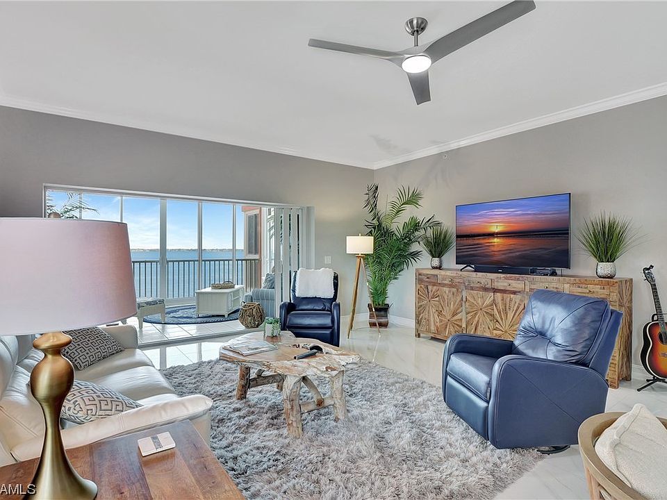 Beautiful, Updated, Gulf-Access Condo with Private Marina & Beach for You! Enjoy the Sunsets in the evening & Sunrise in the morning from your 2nd Floor unit's balconies. Walk off the elevator into your private foyer turning to the Formal Dining & Great Room taking in the view of the expansive riverfront. The Great Room has Sliding Glass Doors that can be opened or closed giving you a true indoor/outdoor entertainment space. The Gourmet Kitchen has enough room for multiple chef's to create the best meals. The upgraded stainless appliances will satisfy everyone! Plenty of storage with 42" cabinets and waterfall granite countertops give you elegance you deserve. The built-in desk keeps you organized, letting this kitchen work for you. When it is time to relax, head to the Master Suite to unwind in the newly renovated Bath or relax on your attached porch and listen to the waves of the River. Your guests will enjoy the shared balcony off of both bedrooms and updated Hall Bath! The Laundry is next to the elevator for convenience. You're footsteps from the Private Beach, Marina or one of three pools in the complex. Come enjoy the stress-free lifestyle at its finest!