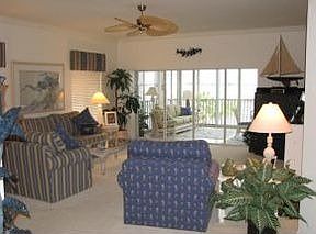 Enjoy spectacular sunsets over the length of the river while sipping iced tea or cocktails from either the large glass enclosed lanai off the living room or the master bedroom. Professionaly decorated unit in light airy beachtones. Gourment kitchen, upscaled bathrooms, hurricane resistant glass throughout. Easy access to private beach and fishing pier. Clubhouse with workout room, lovely community pool and spa, quiet private garden with Koi pond. All this at an amazingly low price. Conveniently located next to public marina. Close to Sanibel and beaches