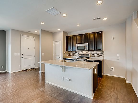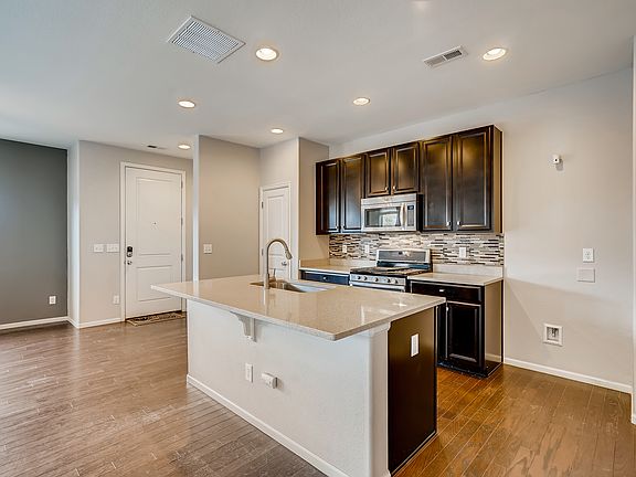This is the 3 bedroom, 2.5 bathroom townhouse you've been looking for! As you enter this beautiful home you see an open concept floorplan and a gorgeous, modern kitchen featuring a large kitchen island, quartz countertops, a gas stove, and sleek steel appliances! Upstairs you will find 3 dreamy bedrooms including a primary bedroom with a walk-in closet and an en suite bathroom for convenience! There is a yard along the side of the home that is a great place to set up a patio set and a barbecue for summer grilling. This home also includes an attached garage which is perfect for unpredictable Colorado weather! Located near several parks, lakes, trails, shopping, and dining options, there is plenty to do near home!