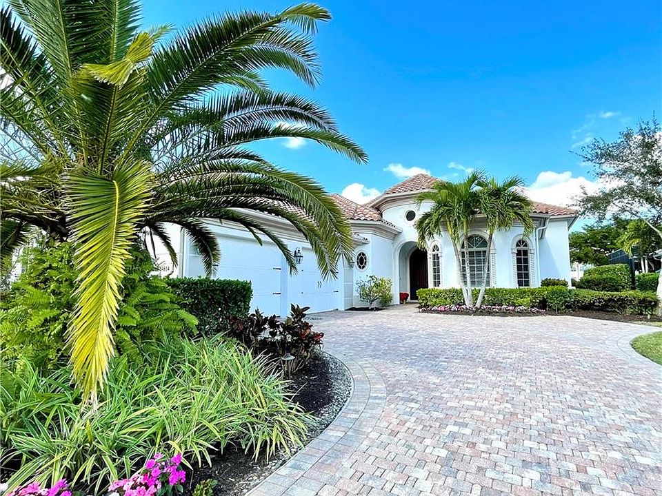 This stunning villa in Bellezza of Mediterra boasts sparkling lake and golf course views! Impeccable landscaping & a brick paver drive lead you into the grand entrance of this lovely home. Designer appointments are found throughout the home, including volume ceilings and gorgeous marble flooring throughout the main living areas. This open floor plan is light and bright with abundant natural light flowing through expansive windows and doors. The gourmet kitchen features stainless steel appliances, rich raised wood cabinetry, and granite countertops. The open great room overlooks the pool with tropical views beyond. The master suite is a relaxing retreat with private access to the lanai. The master bath offers his and her vanities, a large soaking tub, and a walk-in shower. Outdoor living opportunities abound on the expansive screened lanai.