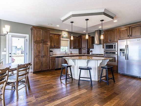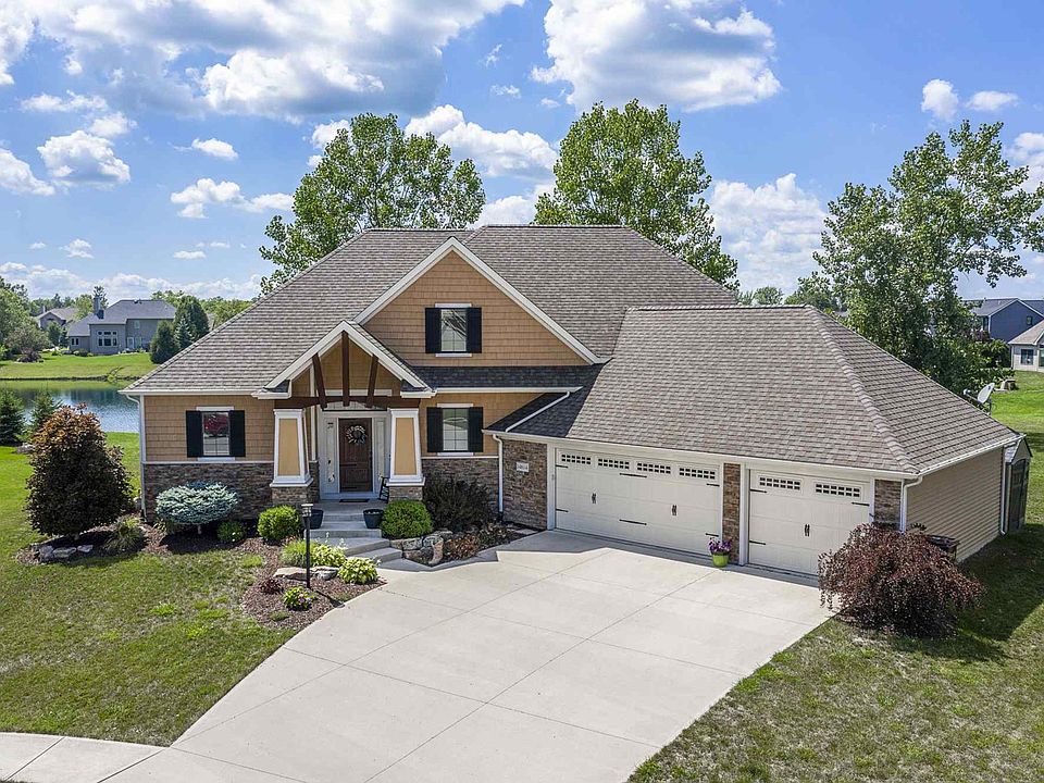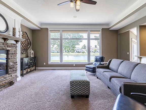 ** OPEN HOUSE MONDAY 8/17 FROM 1-3 PM** This custom 4 bed 4.5 bath, Buescher Homes built, house sits at the end of a cul-de-sac with pond views. In fact, almost every room in the house has a view of this pond. Integrated shelving accent both walls in the foyer. Clean lines, the tray ceiling, and gas log fireplace bring a stylish touch to the open concept main living room. Food prep is enjoyable in the warmth of the kitchen with its rich tone custom cabinetry, stone-top island with breakfast bar seating, and stainless steel appliances. Rest and relax in the main floor bedroom suite, with seating in the bay window, large walk-in closet, and a beautiful tiled shower in the naturally lit bathroom. The upstairs comprises a bonus loft area and three more spacious bedrooms, one with its own private bathroom and the other two share a jack-n-jill bath. Tons of light pour into the daylight basement, a perfect area for entertaining friends and family. The basement contains the family room and rec room in the open space, a full bathroom, and a large den that enables plenty of flexibility in its use. When stepping out onto the back deck you'll be amazed by the recently constructed concrete and brick patio. This unique outdoor area includes a wood fire pizza / bread oven, a decorative fireplace with accent alcoves, a nook with enough space for most large grills, and accent lighting that allows for outdoor entertaining that can continue into the evening. Don't miss the opportunity to claim this beautiful home in the popular Bridgewater subdivision!