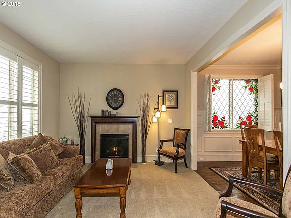 Exceptional outdoor living with Mt Hood views to enjoy from hot tub, deck & large yard backing to green space & just steps to park.Spacious Master Suite,bath is your own personal spa with soaking tub & fireplace.Guest bedroom & full bath on main for possible in laws. Large Media/play room up for kids space. Upgrades include builtins & beautiful molding, plantation shutters,slab granite,SS Appl,AC.