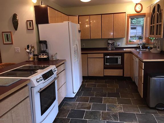 This is a wonderful horse property nestled in a nice subdivision with three outbuildings and beautiful mountain views! Large yard with perennial flowers and lots of room for gardening and playing. Some of the many amenities include cork flooring, slate flooring, office area, custom insulated black-out blinds, wood stove and 3 ceiling fans. The master suite has a walk-in closet & double sinks in the bathroom.