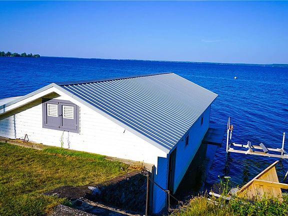 HAVE IT ALL IN ONE at this wonderful home with guest cottage that sits in picturesque and protected Snowshoe Bay in Henderson Harbor. Wonderful floor plan with updates including newer kitchen with corian counters, hardwood floors, custom beverage center with butcher block top, custom wall unit with gas fireplace and built in safe. Newer full bathrooms and bedrooms that are just the right size! Adorable 2 bedroom guest cottage with full bathroom and quaint screened porch would be amazing rental space or perfect for guests. WONDERFUL boat house. Double car garage, newer paved circular drive, storage shed, protected and private outdoor eating area as well as plenty of green lawn space. This home has a furnace and is insulated, it could easily be year round with changes to the water system. Beach area with easy mostly flat access into the lake for swimming tops it all off!