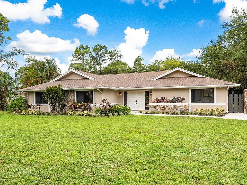 Move in to this TOTALLY remodeled home on a Beautiful acre Plus PRIVATE lot WITH LOTS OF SPACE from your neighbors in desirable Paddock Park 1 AND NO HOA with gorgeous homes and the Best schools around. Everything NEW: KITCHEN, APPLIANCES, FLOORING, LIGHTING, IMPACT WINDOWS, FRESHLY PAINTED INSIDE AND OUT, NEW LANDSCAPING, etc. Detached garage has Impact windows too. Backyard is perfect for family gatherings an oversized pool with hot tub, swim up table and set back from the home which is perfect to finish off with a gazebo, bar AND/OR outside kitchen AND ADD your garden.. Unlimited possibilities with this ACRE plus lot which is so peaceful with plenty of room to add your guest house won't last long.. CREATIVE FINANCING with the right BUYER.Call for details if interested.