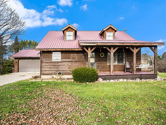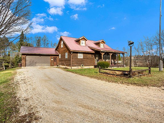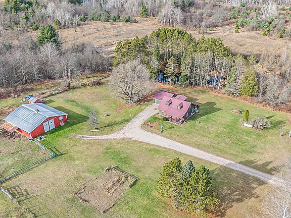 Welcome to your homestead, encompassing 59 rolling acres framed by mature trees. This estate features a 3-bedroom, 2.5-bath home with a full walk-out basement and is equipped for generator hookup. The views from the back deck, which overlook the pond and a small creek, offer a tranquil retreat. The property offers a spacious pole barn with stalls and a fenced-in pasture as well as a shooting range on the property.