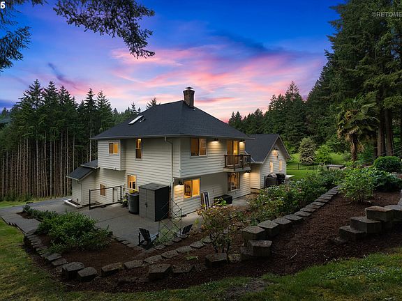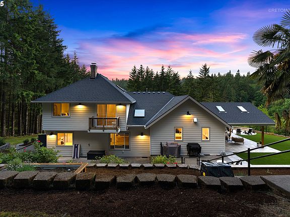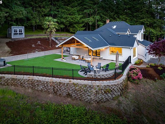 Quietly perched on 5.2 private acres with sweeping territorial views, this PNW-inspired estate offers a perfect blend of relaxed elegance, thoughtful design & modern comfort. Entry into the soaring foyer reveals a stunning open-concept main level that celebrates indoor/outdoor living. The great room is the heart of the home, anchored by dramatic beams, artisan hardwood flooring & a wide-opening lanai door that seamlessly connects to the natural landscape. Entertain effortlessly or unwind in style in the gourmet kitchen, where a generous central island, thick-edge Dekton countertops, pot filler, designer lighting, & brushed gold hardware elevate every detail. Custom cabinetry & expansive counter space make it a dream for any culinary enthusiast. Enjoy showstopper windows in the living area, while the dining space opens to a dramatic vaulted covered patio. The cozy family room invites you to kick back by the wood stove nestled into a charming built-in wall with brick arched features. A main-floor bedroom, full bath with walk-in shower & laundry/mudroom rounds out the level. Upstairs, the vaulted primary suite exudes timeless appeal with a shiplap accent wall, two walk-in closets & a soaking tub, tiled shower & tranquil tree-top views. Two additional bedrooms, one with a private balcony, a full hall bath & generous storage complete the upper level. Outside, discover serenity: a wraparound patio, terraced gardens, turf yard, insulated shed, lush landscaping & a fire pit area for stargazing nights. The three-car garage pairs perfectly with a 30x50 heated shop with tall doors, power & water. Nearly $700K in recent updates include new windows, siding, lighting, gutters, interior/exterior paint, doors, surfaces & SO much more, all completed in 2024 in addition to a newer roof, septic & HVAC! Welcome to Bell Road, where every detail is intentional & every day feels like a retreat! Tucked away yet minutes to Downtown Sherwood, Wilsonville, I-5 & Oregon’s beloved wine country!